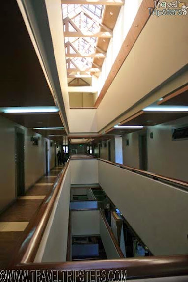 The hotel has five floors. From the front view, the hotel doesn't look so deep.